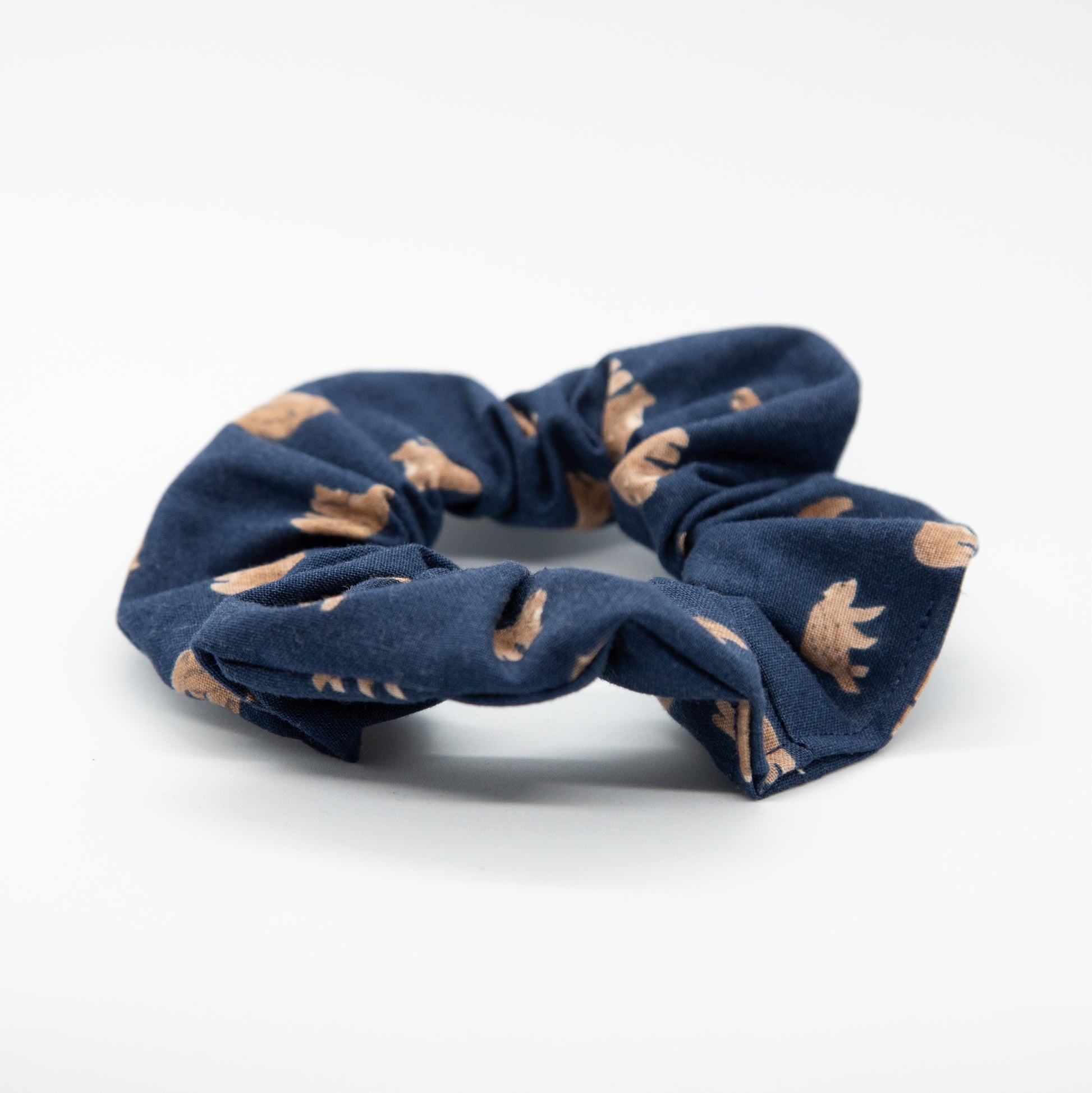 If any of these scrunchies are a necessity, then let it be the bears. Made with a print from the "Brave Enough to Dream" collection from Dear Stella, this navy scrunchie adorned with watercolour bears is a print that will work as a neutral but still shows a little bit of your fun side! Everyone loves a bear!