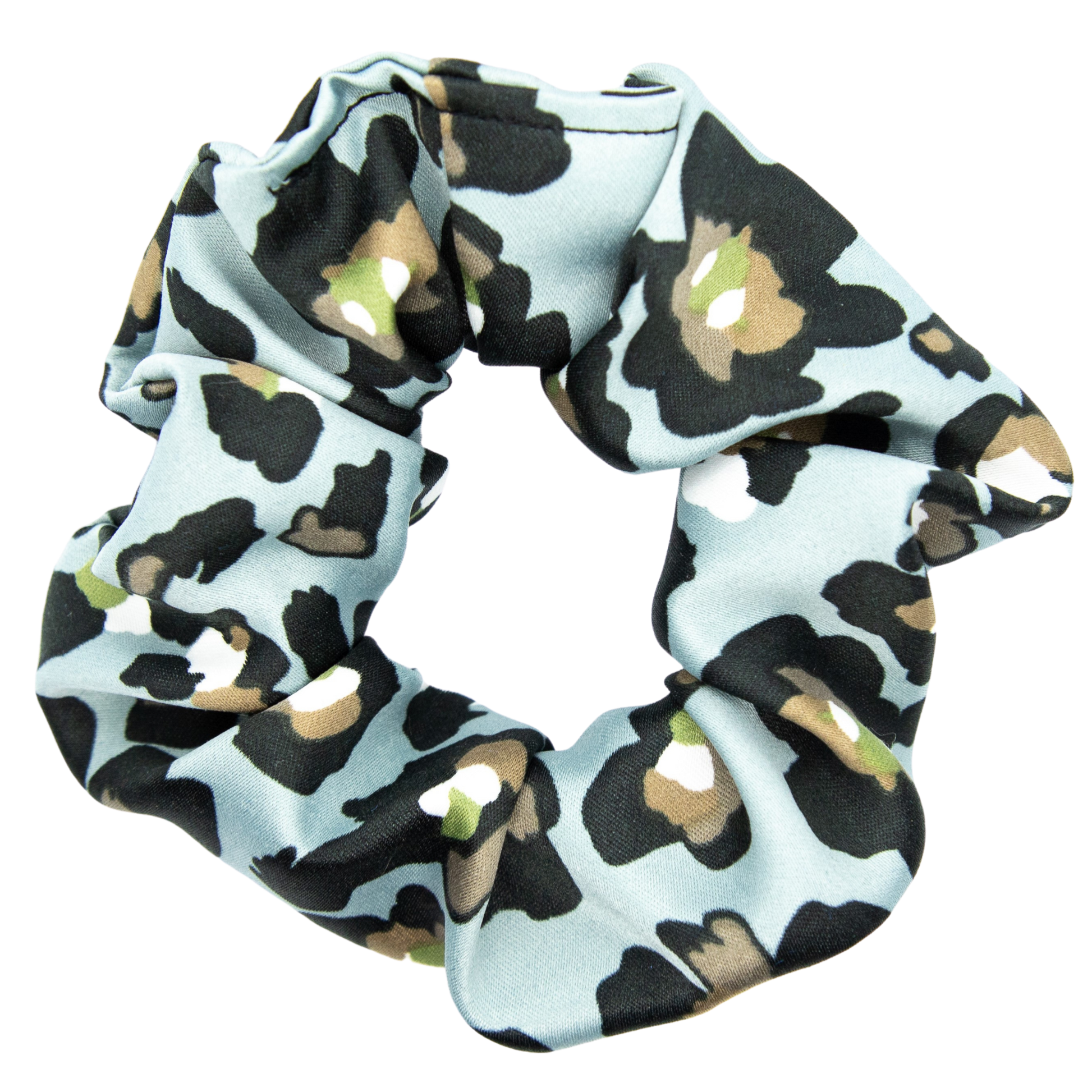 Soft satin finish, subtle stone blue background, this bold leopard print will bring out your wild side any time of the day.