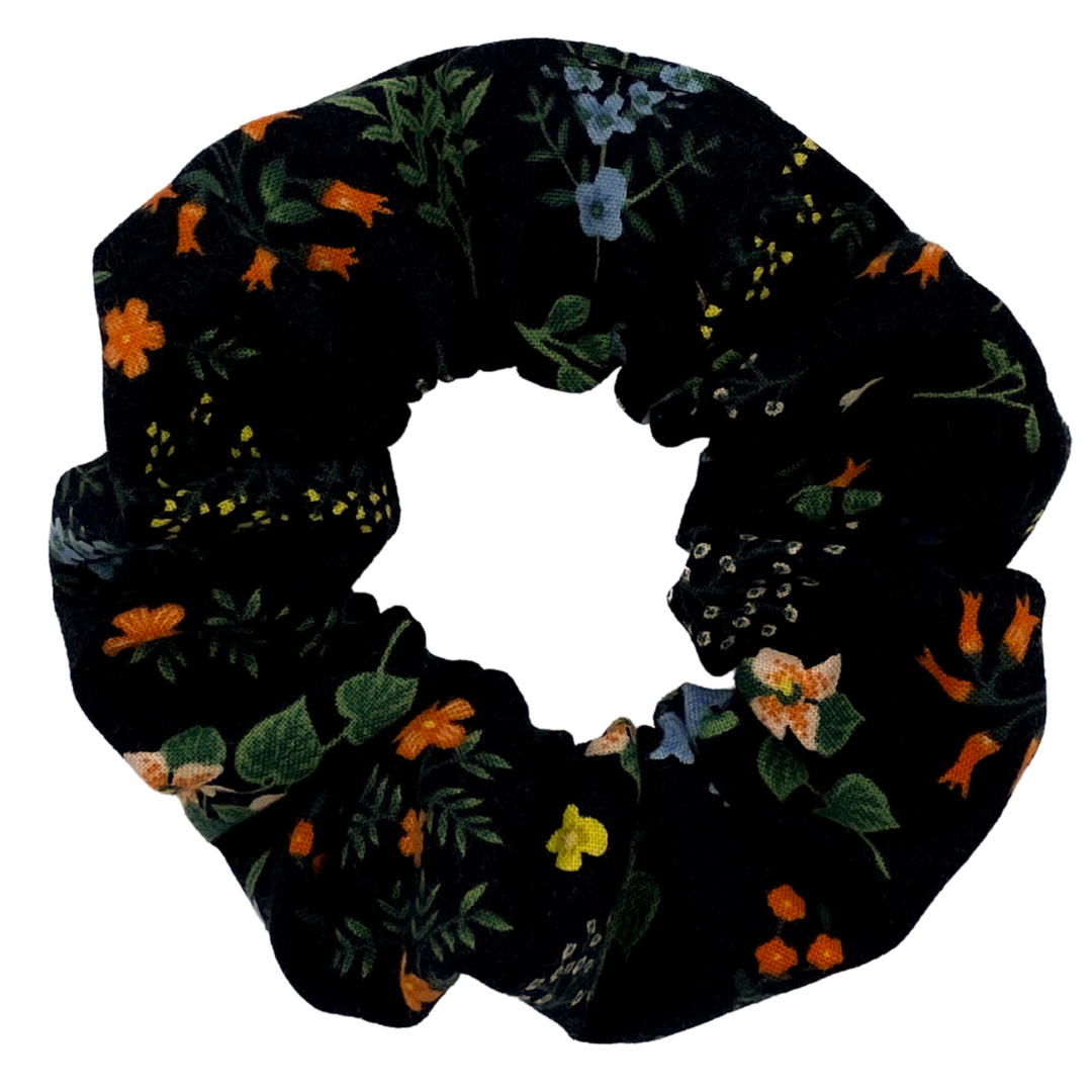 Another gorgeous print by Rifle Paper Company featuring a variety of adorable flowers contrasted with a black backdrop. This scrunchie adds that little pop of colour and sophistication. A truly fancy addition to any scrunchie collection!