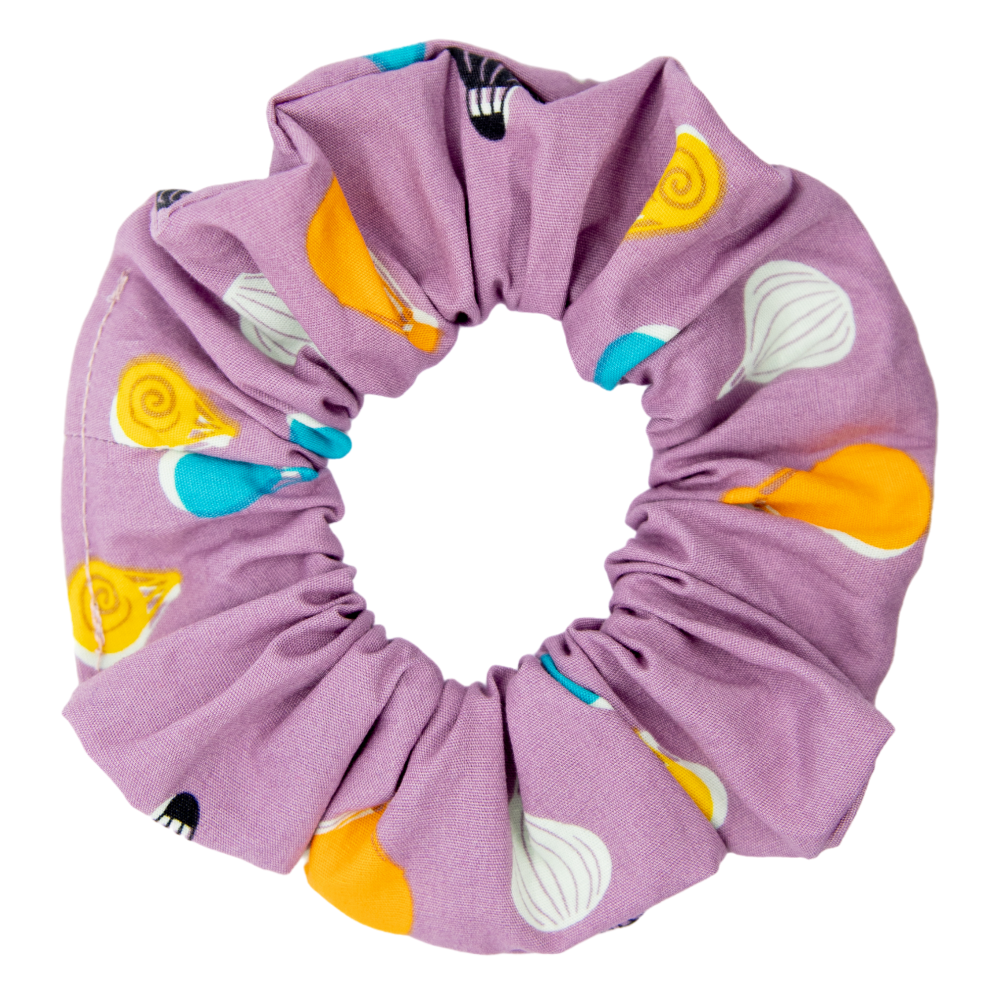 Float away into a lilac sky with this colourful air balloon print. This scrunchie is covered in air balloons full of different prints and colours to add that perfect pop of colour to your hair.