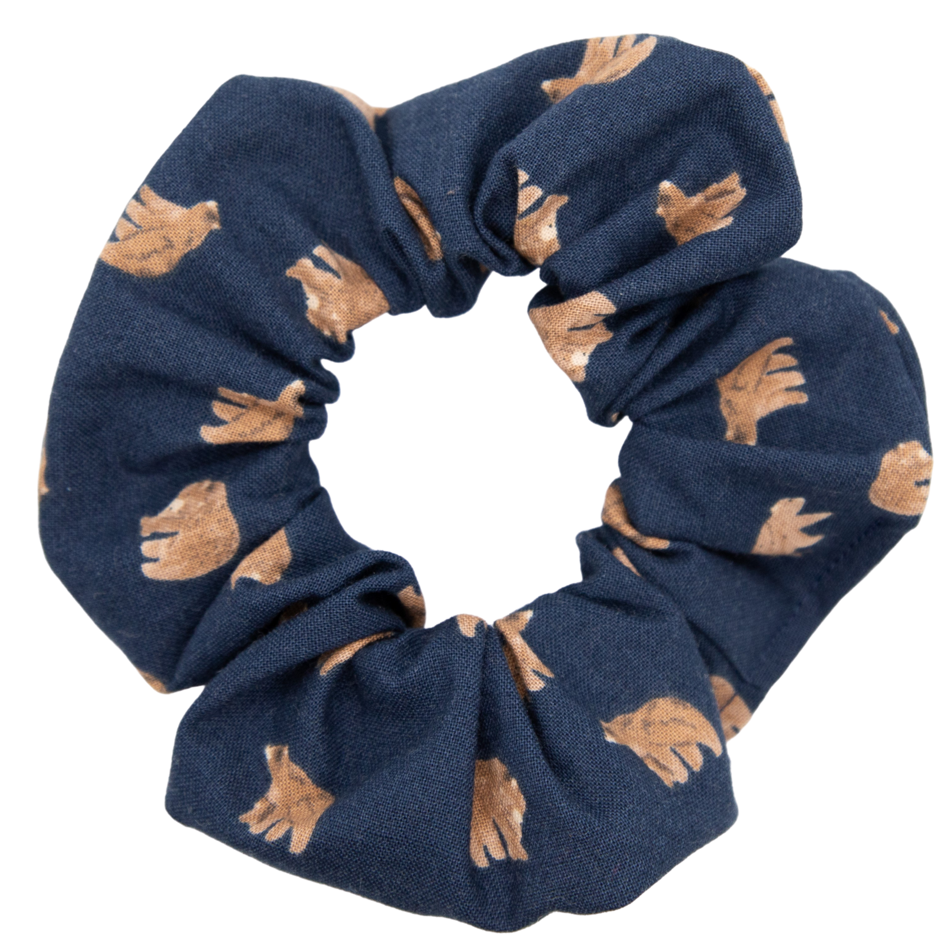 If any of these scrunchies are a necessity, then let it be the bears. Made with a print from the "Brave Enough to Dream" collection from Dear Stella, this navy scrunchie adorned with watercolour bears is a print that will work as a neutral but still shows a little bit of your fun side! Everyone loves a bear!