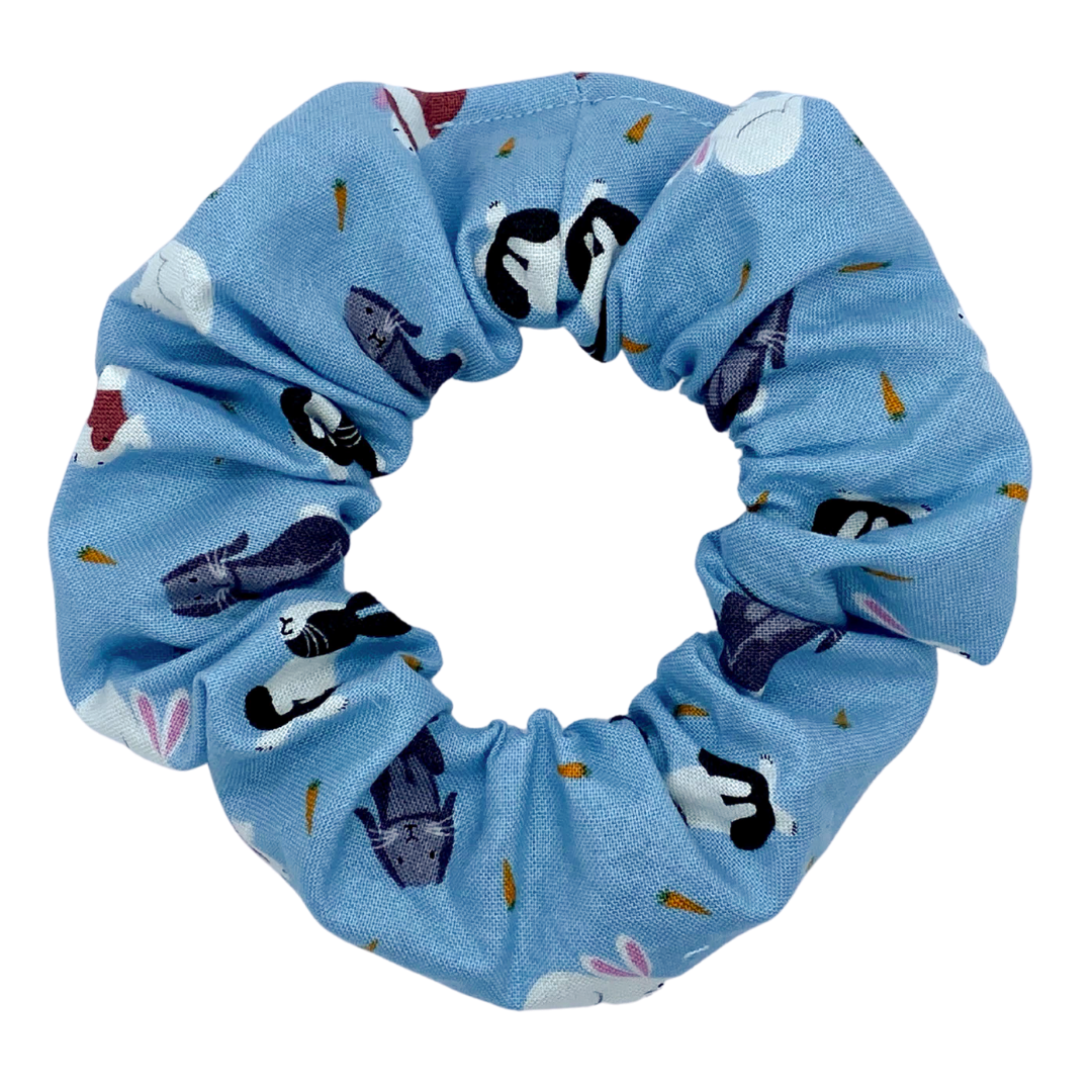 You love small animals so you're going LOVE this scrunchie. lop-eared bunnies, long-haired guinea pigs, this scrunchie is covered in adorableness! And see those little carrots in mixed in there? You've gotta treat those little cuties right!