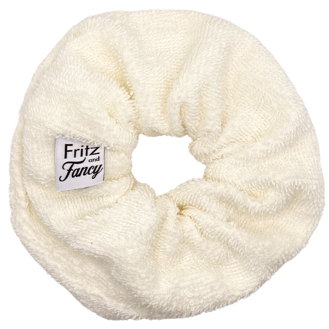 Banish bad hair days with our Jumbo White Terrycloth Scrunchie! Twice the size of regular scrunchies, this highly absorbant terrycloth hair tie will keep your hair securely in place while keeping it looking and feeling great! Get ready to take on the world with confidence, one stylish and comfortable scrunchie at a time!