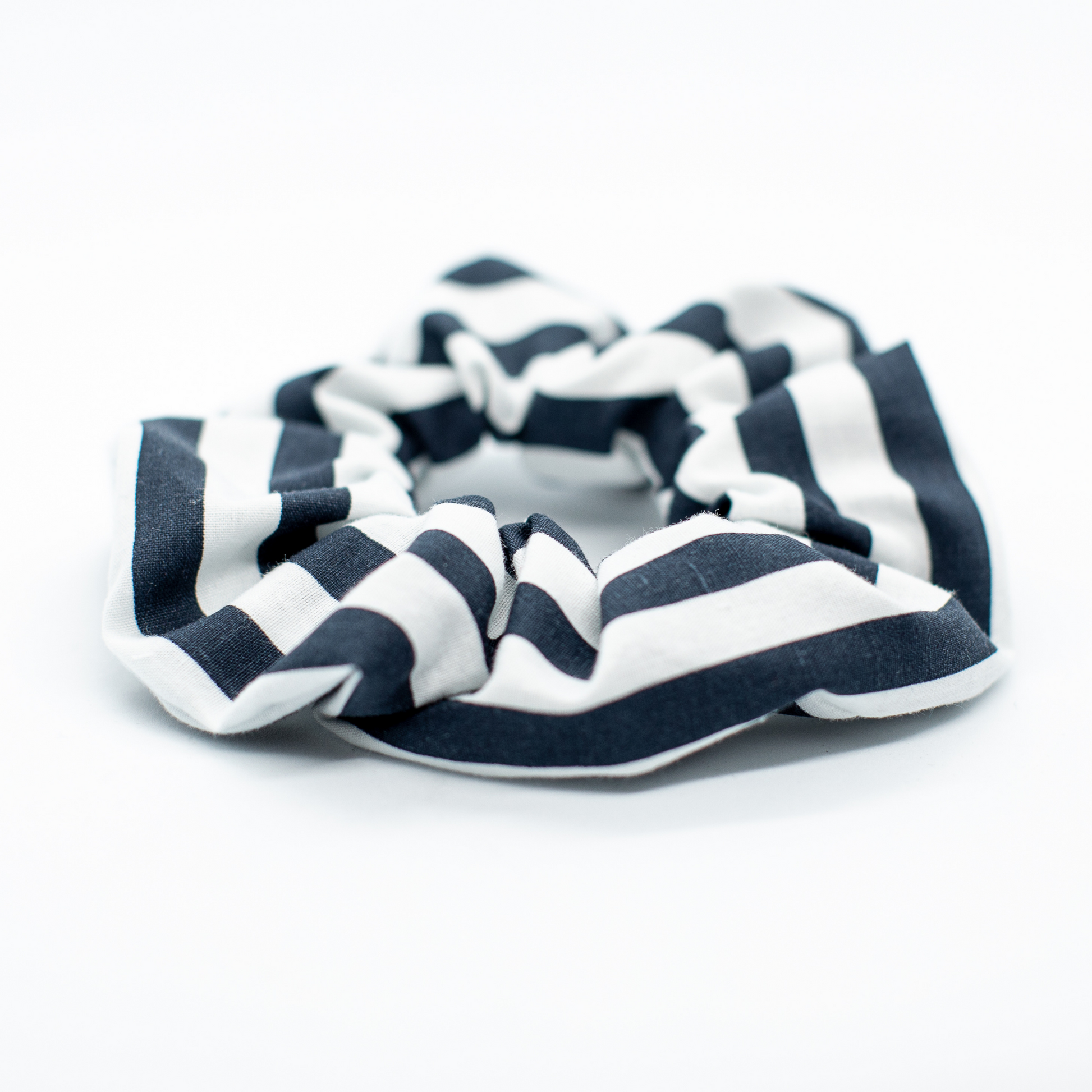 Bold navy stipes that really stand out, this scrunchie will give you those classy dressed up vibes you've been searching for in a scrunchie.